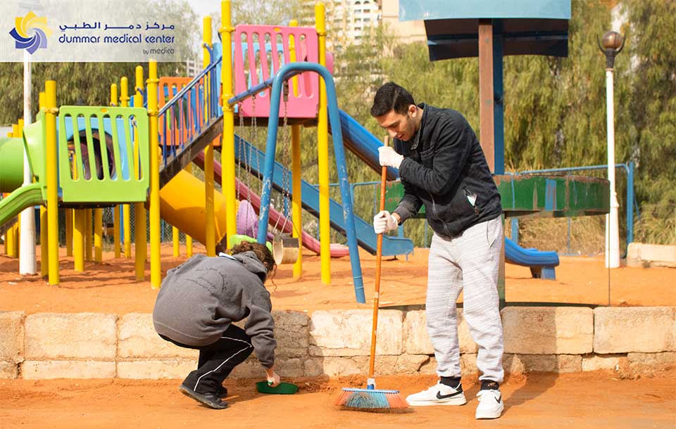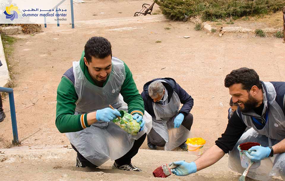 كما شارك فريق مركز دمر الطبي بالتعاون مع فريق أمل سوريا التطوعي بتنظيف وإعادة طلاء الحديقة، لتحسين هويتها البصرية وجعلها مكاناً جاذباً يقضي فيه الأطفال وقتاً ممتعاً باللعب والراحة.
