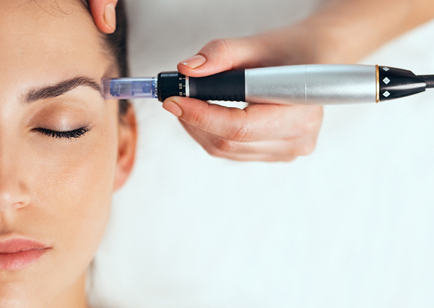 جهاز يستخدم تقنية الوخز الدقيق لإنشاء ثقوب صغيرة جدًا في الجلد، مما يحفز الشفاء الطبيعي